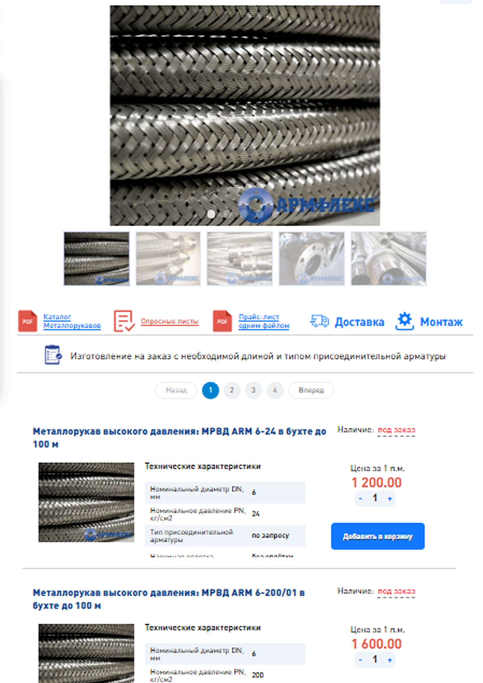 ТЕХНИЧЕСКИЕ ХАРАКТЕРИСТИКИ И МАТЕРИАЛЫ МЕТАЛЛОРУКАВА ГЕРМЕТИЧНОГО ВЫСОКОГО ДАВЛЕНИЯ СТАНДАРТНОЙ ГОФРОВКИ МРВД ARM
